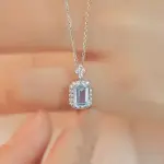 > Emerald Cut Topaz Halo Charm Necklace in 925 Sterling Silver