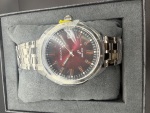 > Bulova Jet Star st steel band burgundy dial red markers