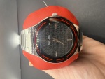 > Bulova Men's Apollo Theatre Men's st steel band black dial with red accents